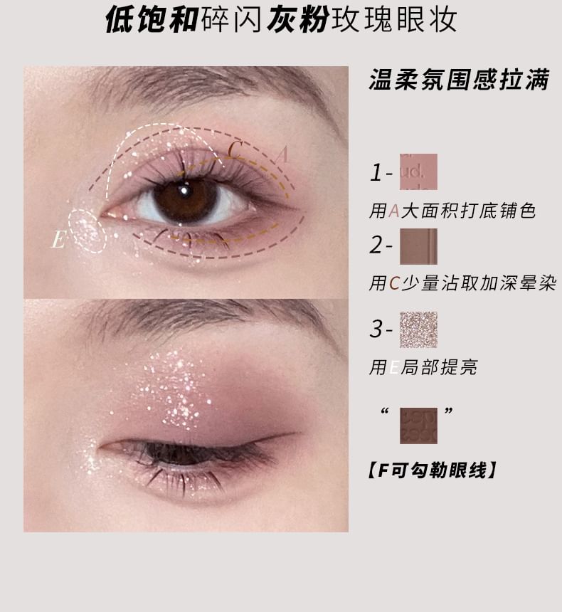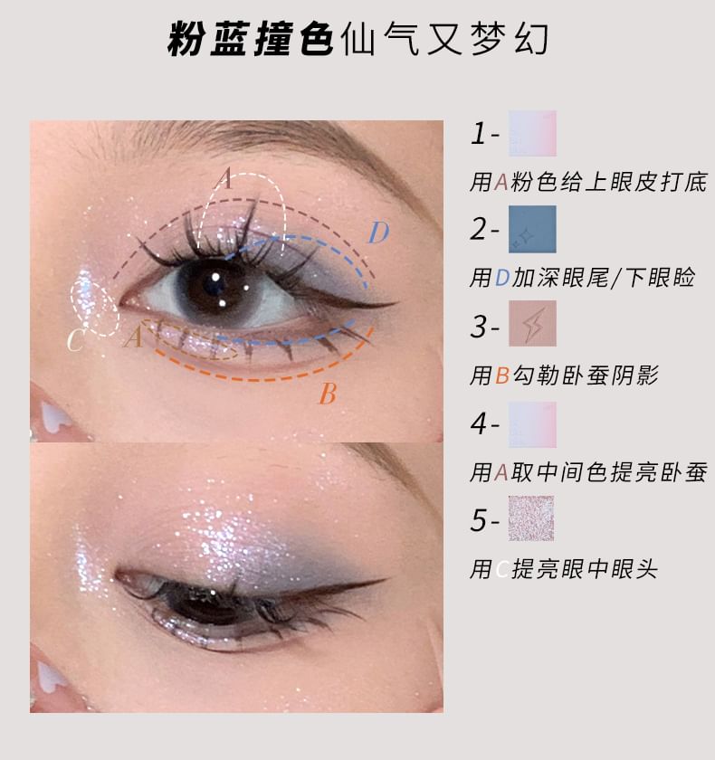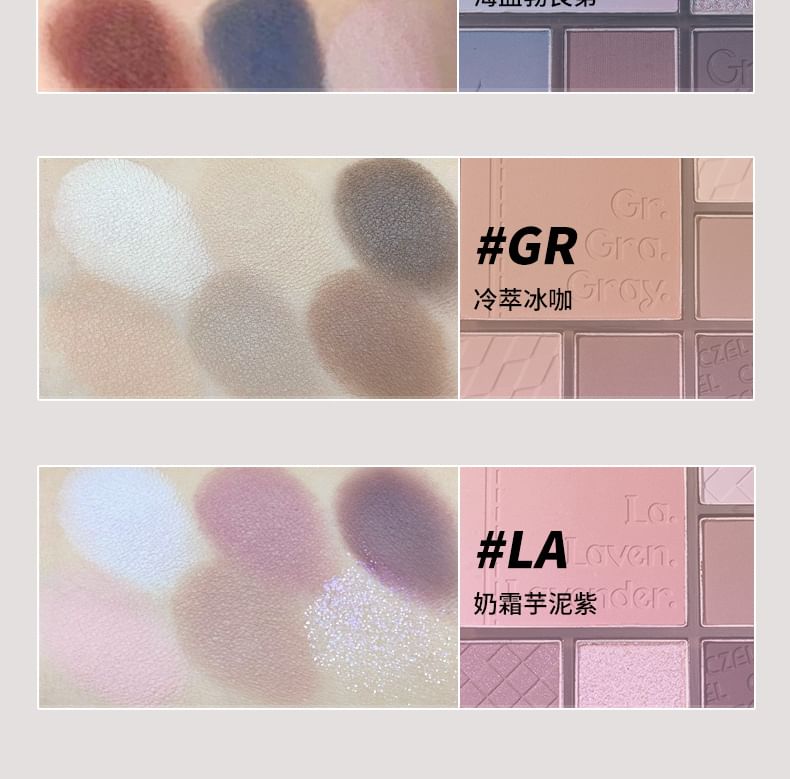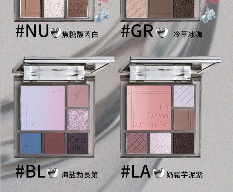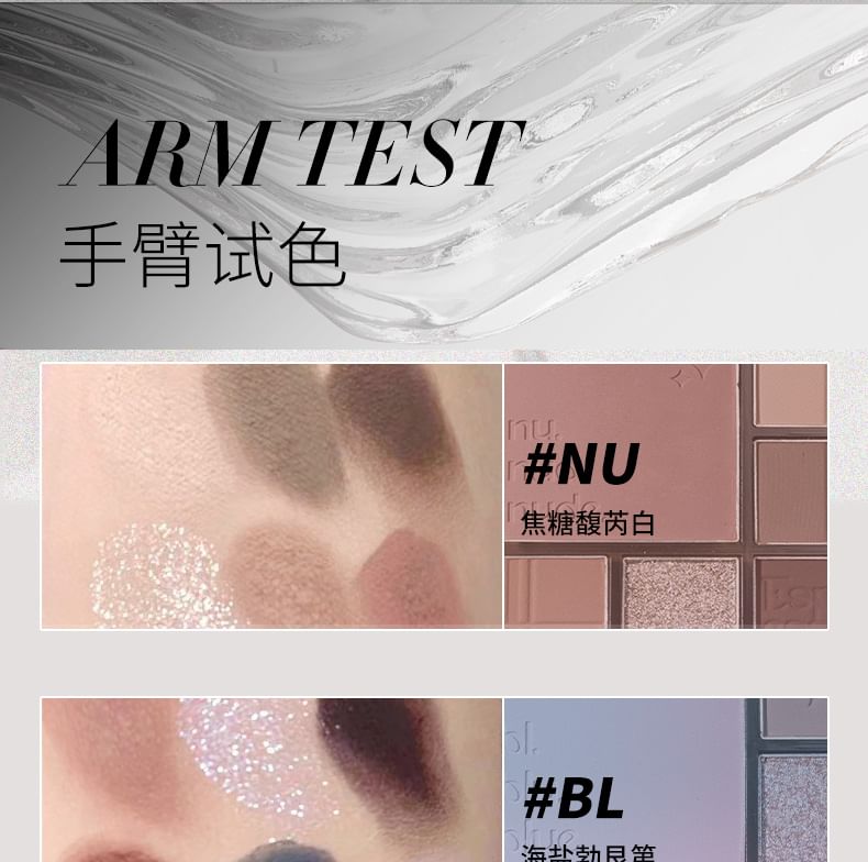 Különleges fodrozódó mintaFinom hidrofób por, többféle kombináció, finom matt, puha mud és tiszta gyöngyházfényHasználható szemhéjfestékhez, szemceruzához, kontúrozáshoz és pirosítóhoz