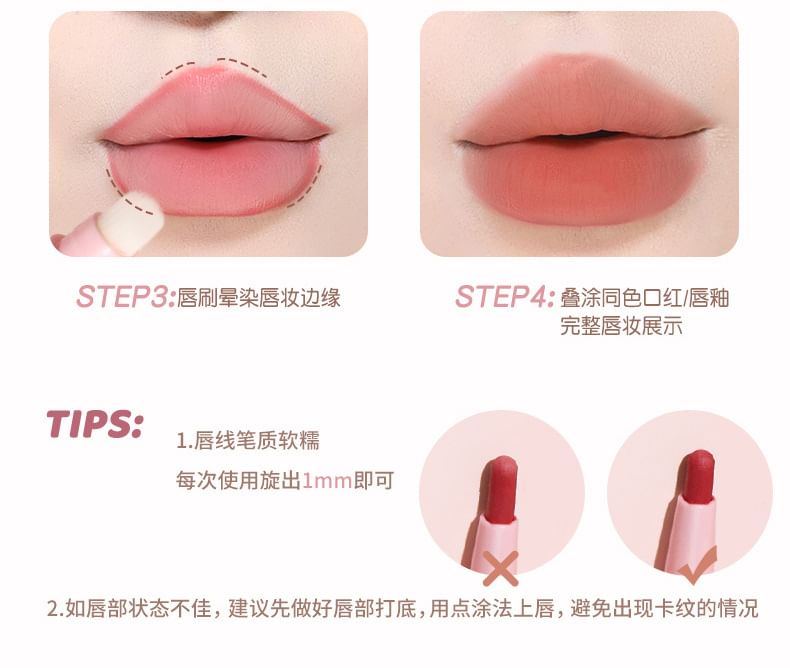 • Kontúrozásra, kitöltésre és ombre (átmenetes) ajaksminkhez is tökéletes.