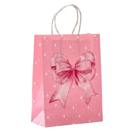 WGW Papírtáska, kicsi (20cmx15cmx8cm), rózsaszín masnis 03