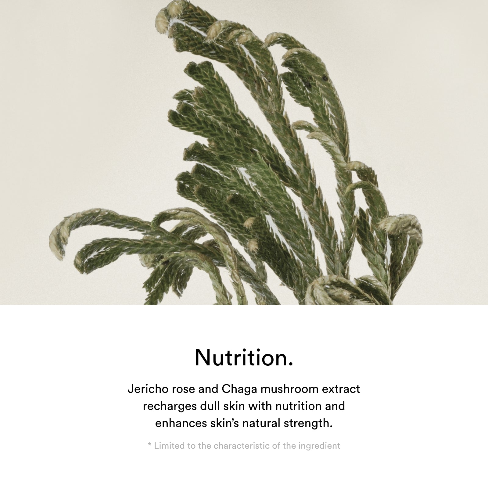 Rose of Jericho. A (30,380ppm) Jericho rózsája és a Chaga gomba kivonat táplálja a fakó bőrt és fokozza a bőr természetes erejét. A kék agavé kivonat helyreállítja a száraz bőr víz- és olaj egyensúlyát. Száraz bőrre ajánljuk.