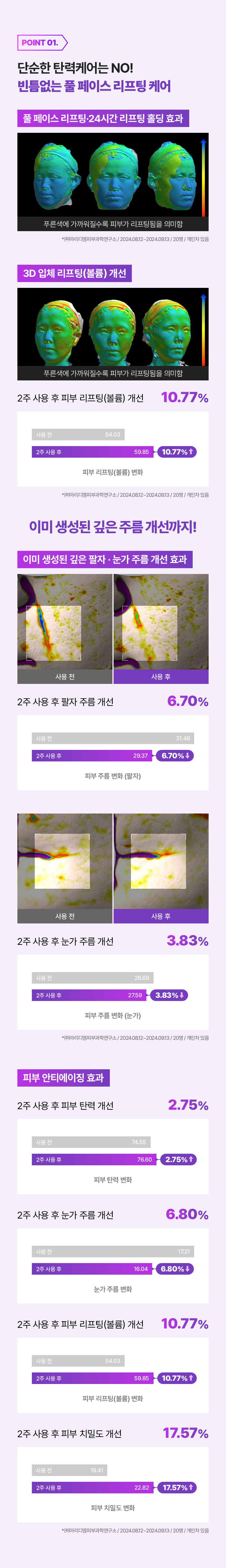 Core-vity™ (Collagen IV & Peptides): Alacsony molekulasúlyú peptideket és kollagént tartalmaz, amelyek a bőr rugalmasságáért felelnek, segítve a megereszkedett bőr megemelését.