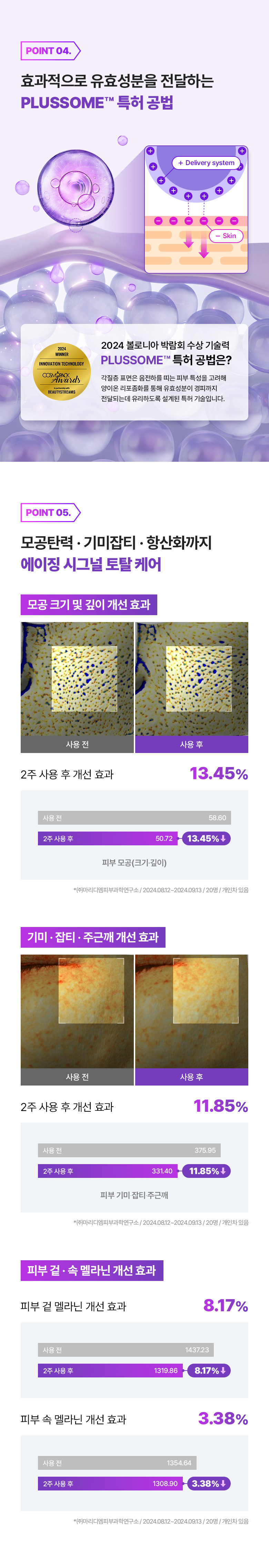 Gyors felszívódás: A speciális "PLUSSOME™" technológiának köszönhetően a hatóanyagok 3 másodperc alatt a bőr mélyebb rétegeibe jutnak, nem hagynak ragacsos érzetet, csak egészséges fényt.