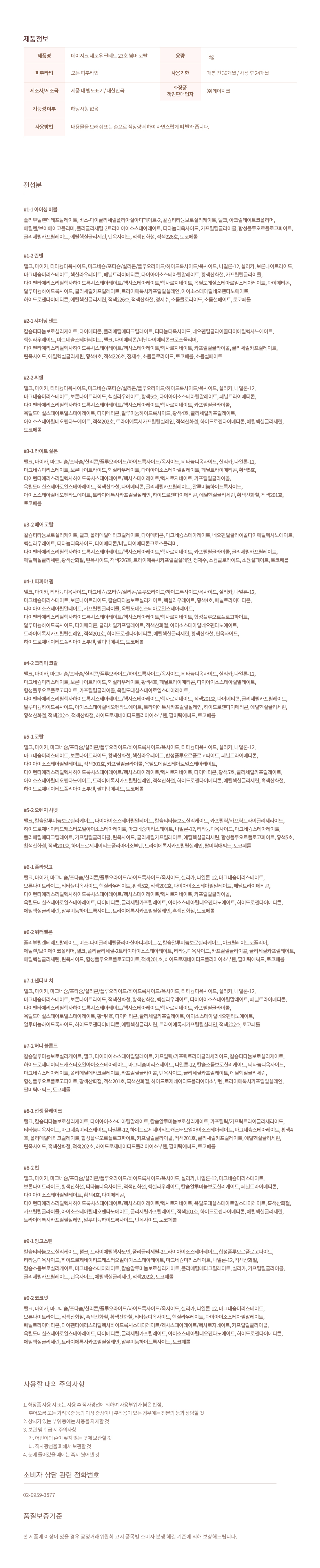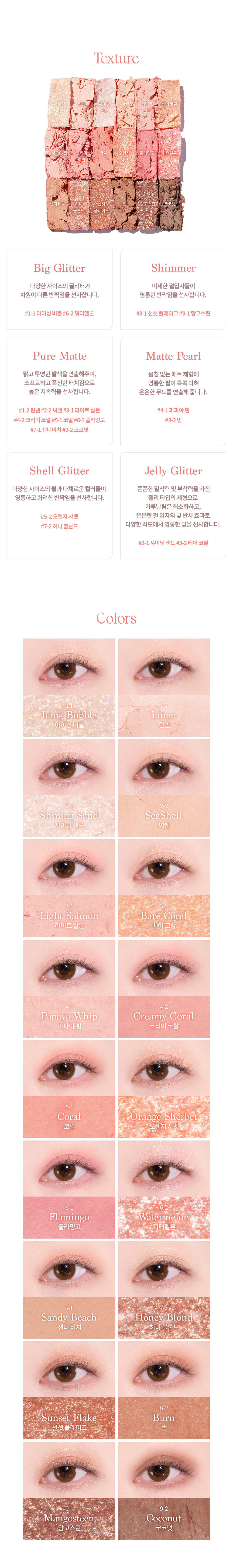 [Icing Bubble] Polybutylene Terephthalate, Bis-diglyceryl Polyacyl Adipate-2, Calcium Titanium Borosilicate, Talc, Acrylate Copolymer, Ethylene/VA Copolymer, Polyglyceryl-2 Triisostearate, Titanium Dioxide, Caprylyl Glycol, Synthetic Fluorphlogopite, Glyceryl Caprylate, Ethylhexylglycerin, Tin Oxide, Red Iron Oxide, Helindone Pink CN, Tocopherol [Linen] Talc, Mica, Titanium Dioxide, Magnesium/Potassium/Silicon/Fluoride/Hydroxide/Oxide, Nylon-12, Silica, Boron Nitride, Magnesium Myristate, Hexyl Laurate, Phenyl Trimethicone, Diisostearyl Malate, Yellow Iron Oxide, Caprylyl Glycol, Dipentaerythrityl Hexahydroxystearate/Hexastearate/Hexarosinate, Octyldodecyl Stearoyl Stearate, Dimethicone, Aluminum Hydroxide, Glyceryl Caprylate, Triethoxycaprylylsilane, Isostearyl Neopentanoate, Hydrogen Dimethicone, Ethylhexylglycerin, Helindone Pink CN, Red Iron Oxide, Purified Water, Sodium Chloride, Sodium Sulfate, Tocopherol [Shinning Sand] Calcium Titanium Borosilicate, Dimethicone, Polymethyl Methacrylate, Titanium Dioxide, Neopentyl Glycol Diethylhexanoate, Hexyl Laurate, Magnesium Stearate, Talc, Dimethicone/Vinyl Dimethicone Crosspolymer, Dipentaerythrityl Hexahydroxystearate/Hexastearate/Hexarosinate, Caprylyl Glycol, Glyceryl Caprylate, Tin Oxide, Ethylhexylglycerin, Tratarzine, Helindone Pink CN, Purified Water, Sodium Chloride, Tocopherol, Sodium Sulfate [Seashell] Talc, Mica, Titanium Dioxide, Magnesium/Potassium/Silicon/Fluoride/Hydroxide/Oxide, Silica, Nylon-12, Magnesium Myristate, Boron Nitride, Hexyl Laurate, Sunset Yellow FCF, Diisostearyl Malate, Phenyltrimethicone, Dipentaerythrityl Hexahydroxystearate/Hexastearate/Hexarosinate, Caprylyl Glycol, Octyldodecyl Stearoyl Stearate, Dimethicone, Aluminum Hydroxide, Tratarzine, Glyceryl Caprylate, Isostearyl Neopentanoate, Lithol Rubine BCA, Triethoxycaprylylsilane, Red Iron Oxide, Hydrogen Dimethicone, Ethylhexylglycerin, Tocopherol [Light Salmon] Talc, Mica, Magnesium/Potassium/Silicon/Fluoride/Hydroxide/Oxide, Titanium Dioxide, Silica, Nylon-12, Magnesium Myristate, Boron Nitride, Hexyl Laurate, Diisostearyl Malate, Phenyl Trime Ticon, Sunset Yellow FCF, Dipentaerythrityl Hexahydroxystearate/Hexastearate/Hexarosinate, Caprylyl Glycol, Octyldodecyl Stearoyl Stearate, Red Iron Oxide, Dimethicone, Glyceryl Caprylate , Aluminum Hydroxide, Isostearyl Neopentanoate, Triethoxycaprylylsilane, Hydrogen Dimethicone, Ethylhexylglycerin, Yellow Iron Oxide, Lithol Rubine B, Tocopherol [Bare Coral] Calcium Titanium Borosilicate, Talc, Polymethyl Methacrylate, Dimethicone, Magnesium Stearate, Neopentyl Glycol Diethylhexanoate, Hexyl Laurate, Titanium Dioxide, Dimethicone/Vinyl Dimethicone Crosspolymer , Dipentaerythrityl Hexahydroxystearate/Hexastearate/Hexarosinate, Caprylyl Glycol, Glyceryl Caprylate, Ethylhexylglycerin, Yellow Iron Oxide, Tin Oxide, Helindone Pink CN, Triethoxycaprylylsilane, Purified Water, Sodium Chloride, Sodium Sulfate, Tocopherol [Papaya Whip] Talc, Mica, Titanium Dioxide, Magnesium/Potassium/Silicon/Fluoride/Hydroxide/Oxide, Silica, Nylon-12, Magnesium Myristate, Boron Nitride, Calcium Titanium Borosilicate, Hexyl Laurate, Tratarzine, Phenyl Trimethicone, Diisostearyl Malate, Caprylyl Glycol, Octyldodecyl Stearoyl Stearate, Dipentaerythrityl Hexahydroxystearate/Hexastearate/Hexarosinate, Synthetic Fluorphlogopite , Aluminum Hydroxide, Dimethicone, Glyceryl Caprylate, Red Iron Oxide, Isostearyl Neopentanoate, Triethoxycaprylylsilane, Lithol Rubine B, Hydrogen Dimethicone, Ethylhexylglycerin, Yellow Iron Oxide , Tin Oxide, Hydrogenated Polyisobutene, Palmitic Acid, Tocopherol [Creamy Coral] Talc, Mica, Magnesium/Potassium/Silicon/Fluoride/Hydroxide/Oxide, Titanium Dioxide, Silica, Nylon-12, Magnesium Myristate, Boron Nitride, Hexyl Laurate, Tratarzine, Phenyl Trimethicone, Diamond Isostearyl Malate, Synthetic Fluorphlogopite, Caprylyl Glycol, Octyldodecyl Stearoyl Stearate, Dipentaerythrityl Hexahydroxystearate/Hexastearate/Hexarosinate, Lithol Rubine B, Dimethicone, Glyceryl Caprylate, Aluminum Hydroxide, Isostearyl Neopentanoate, Triethoxycaprylylsilane, Hydrogen Dimethicone, Ethylhexylglycerin, Yellow Iron Oxide, Lithol Rubine BCA, Red Iron Oxide, Hydrogenated Polyisobutene, Palmitic Acid, Tocopherol [Coral] Talc, Mica, Magnesium/Potassium/Silicon/Fluoride/Hydroxide/Oxide, Titanium Dioxide, Silica, Nylon-12, Magnesium Myristate, Boron Nitride, Yellow Iron Oxide, Hexyl Laurate, Synthetic Fluorphlogopite, Phenyl Trimethicone, Diisostearyl Malate, Lithol Rubine B, Caprylyl Glycol, Octyldodecyl Stearoyl Stearate, Dipentaerythrityl Hexahydroxystearate/Hexastearate/Hexarosinate, Dimethicon, Sunset Yellow FCF, Glyceryl Caprylate, Isostearyl Neopentanoate, Triethoxycaprylylsilane, Red Iron Oxide, Hydrogen Dimethicone, Ethylhexylglycerin, Black Iron Oxide, Hydrogenated Polyisobutene, Palmitic Acid, Tocopherol [Orange Sherbet] Talc, Calcium Aluminum Borosilicate, Diisostearyl Malate, Calcium Titanium Borosilicate, Caprylic/Capric Triglyceride, Hydrogenated Castor Oil Isostearate, Magnesium Myristate, Nylon-12, Titanium Dioxide, Magnesium Stearate, Polymethyl Methacrylate, Caprylyl Glycol, Tin Oxide, Glyceryl Caprylate, Ethylhexylglycerin, Synthetic Fluorphlogopite, Sunset Yellow FCF, Yellow Iron Oxide, Lithol Rubine B, Hydrogenated Polyisobutene, Triethoxycaprylylsilane, Palmitic Acid, Tocopherol [Flamingo] Talc, Mica, Magnesium/Potassium/Silicon/Fluoride/Hydroxide/Oxide, Silica, Nylon-12, Magnesium Myristate, Boron Nitride, Titanium Dioxide, Hexyl Laurate, Sunset Yellow FCF, Lithol Rubine B, Diisostearyl Malate, Phenyl Trimethicone, Dipentaerythrityl Hexahydroxystearate/Hexastearate/Hexarosinate, Caprylyl Glycol, Octyldodecyl Stearoyl Stearate, Dimethicone, Glyceryl Caprylate, Isostearyl Neopentanoate, Hydrogen Dimethicone, Ethylhexylglycerin, Aluminum Hydroxide, Triethoxycaprylylsilane, Black Iron Oxide, Tocopherol [Watermelon] Polybutylene Terephthalate, Bis-diglyceryl Polyacyl Adipate-2, Calcium Aluminum Borosilicate, Acrylate Copo