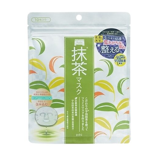 100% tiszta pamutból készült maszk, amely gondosan válogatott Uji Matcha-t tartalmaz.