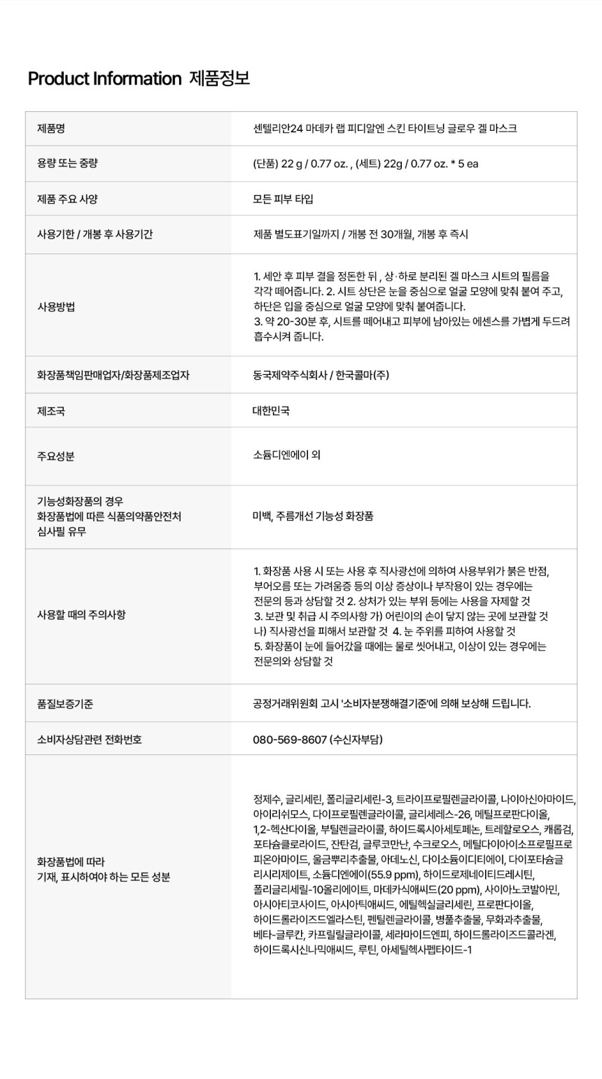 Centellian24 Madeca Lab PDRN Skin Tightening Glow Gél Arcmaszk 22ml