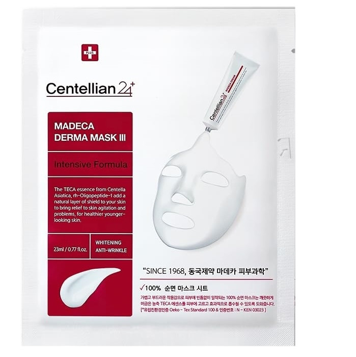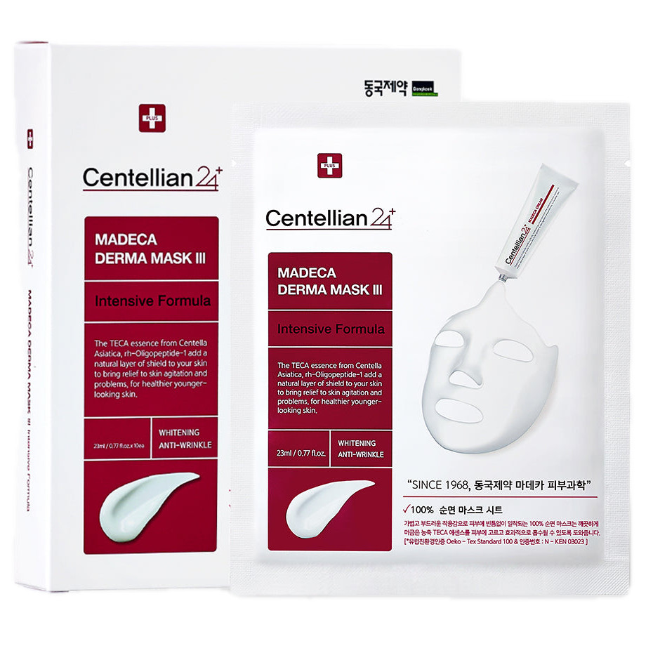 A Centellian24 Madeca Derma Mask III egy intenzív bőrmegújító maszk, amelyet a TECA (Centella Asiatica kivonat) gazdagít. Ez a szabadalmaztatott összetevő nyugtatja a bőrt, támogatja a regenerációt, és segít megerősíteni a bőr védőrétegét.