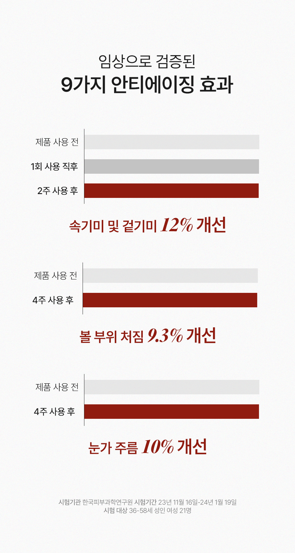 Klinikailag tesztelt formula, amely bizonyítottan csökkenti az öregedés látható jeleit, beleértve a ráncokat, a bőr megereszkedését és az öregségi foltokat. Jelentősen javítja a bőr rugalmasságát, miközben hatékonyságát és biztonságosságát klinikai vizsgálatok támasztják alá.