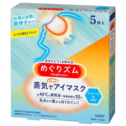 A MegRhythm Steam szemmaszk kellemes 40°C-ra melegszik fel. Aromaterápiaként mentol tea illatot áraszt.