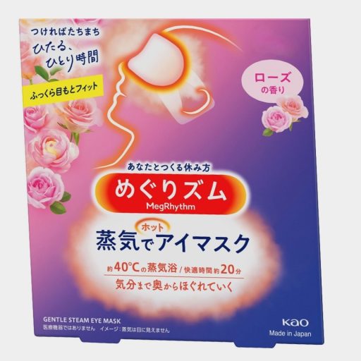 A MegRhythm Steam szemmaszk kellemes 40°C-ra melegszik fel. Aromaterápiaként rózsa illatot áraszt.