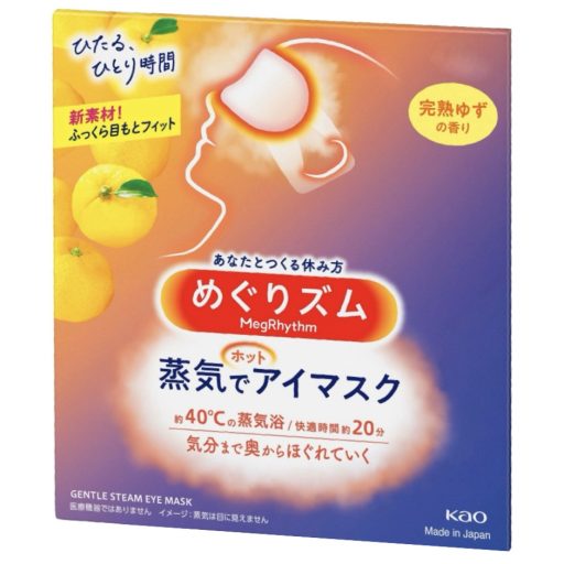 A MegRhythm Steam szemmaszk kellemes 40°C-ra melegszik fel. Aromaterápiaként yuzu (citrus) illatot áraszt.