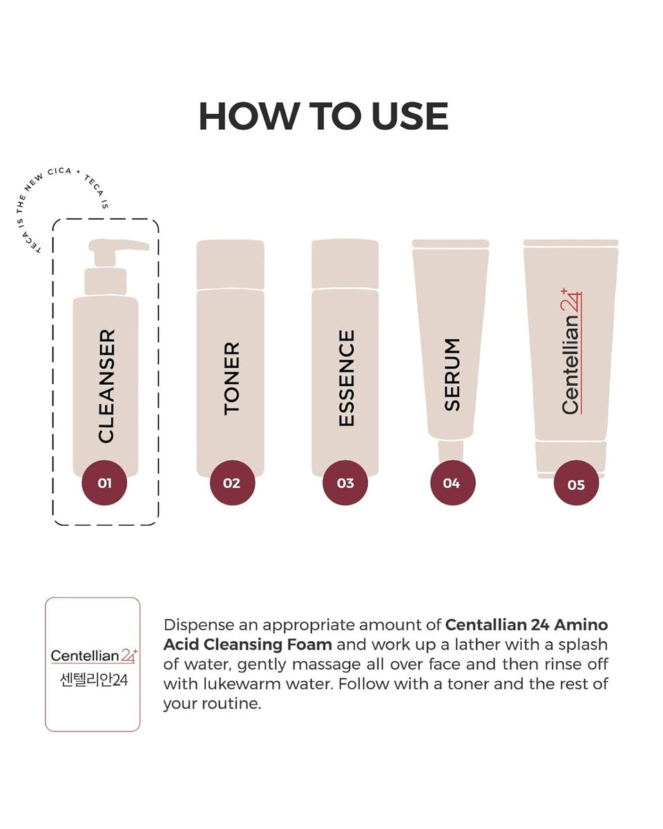 TECA-t, Centella Asiaticát tartalmaz, és enyhén savas lemosóformula jellemzi (pH 5–6 között).