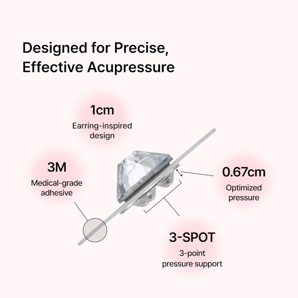 Fülre ragasztható, ékszernek tűnő akupresszúrás tapasz, amely stresszoldásra, bőr feszesítésre, energizálásra és étvágykontrollra kínál alternatív megoldást. Nem kell beleszúrni a fülbe!