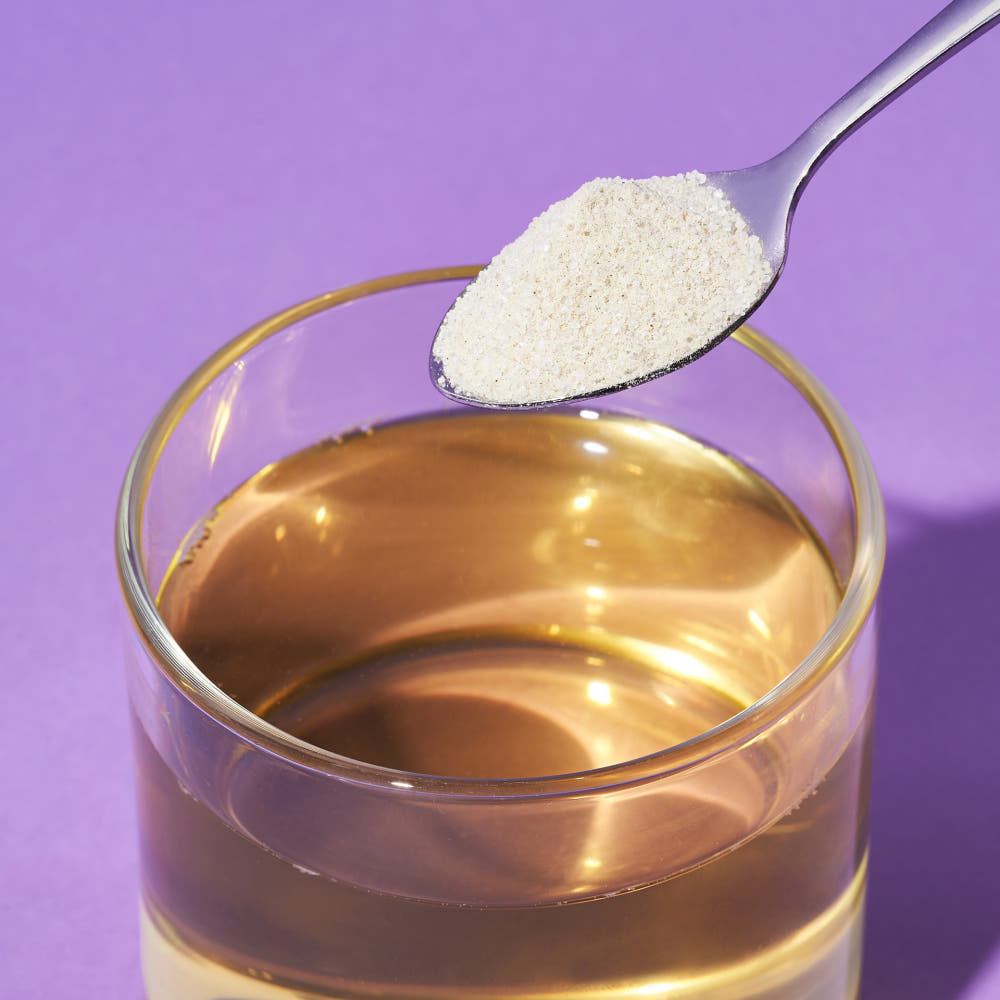 Pulbere de ceai Kombucha cu aromă de măr. Preparată cu 17 tipuri de probiotice, prebiotice și fructooligozaharide pentru a sprijini digestia.