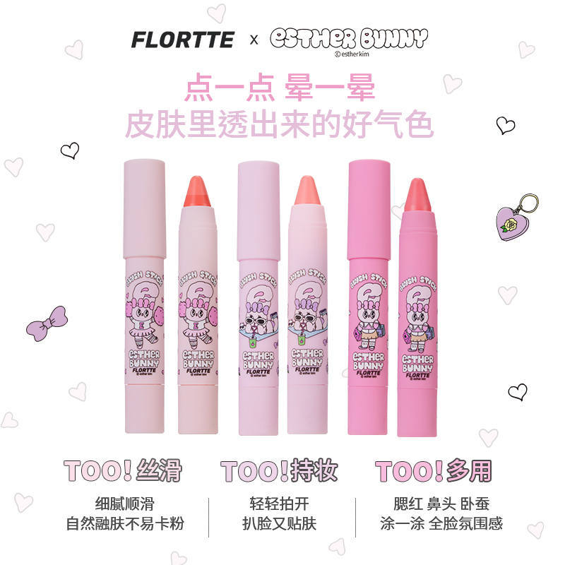 FLORTTE Blush Stick Arcpirosító #03 Strawberry Pink 3.5g (Esther Bunny Collection)