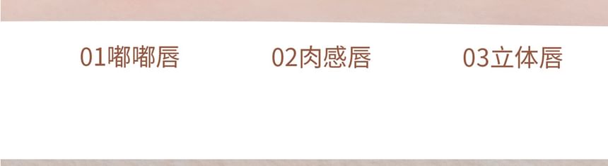 01 Plump Lips: Kiemeli az ajkak formáját és teltebb hatást kölcsönöz, ideális a dúsabb, csábítóbb ajkak megrajzolásához.