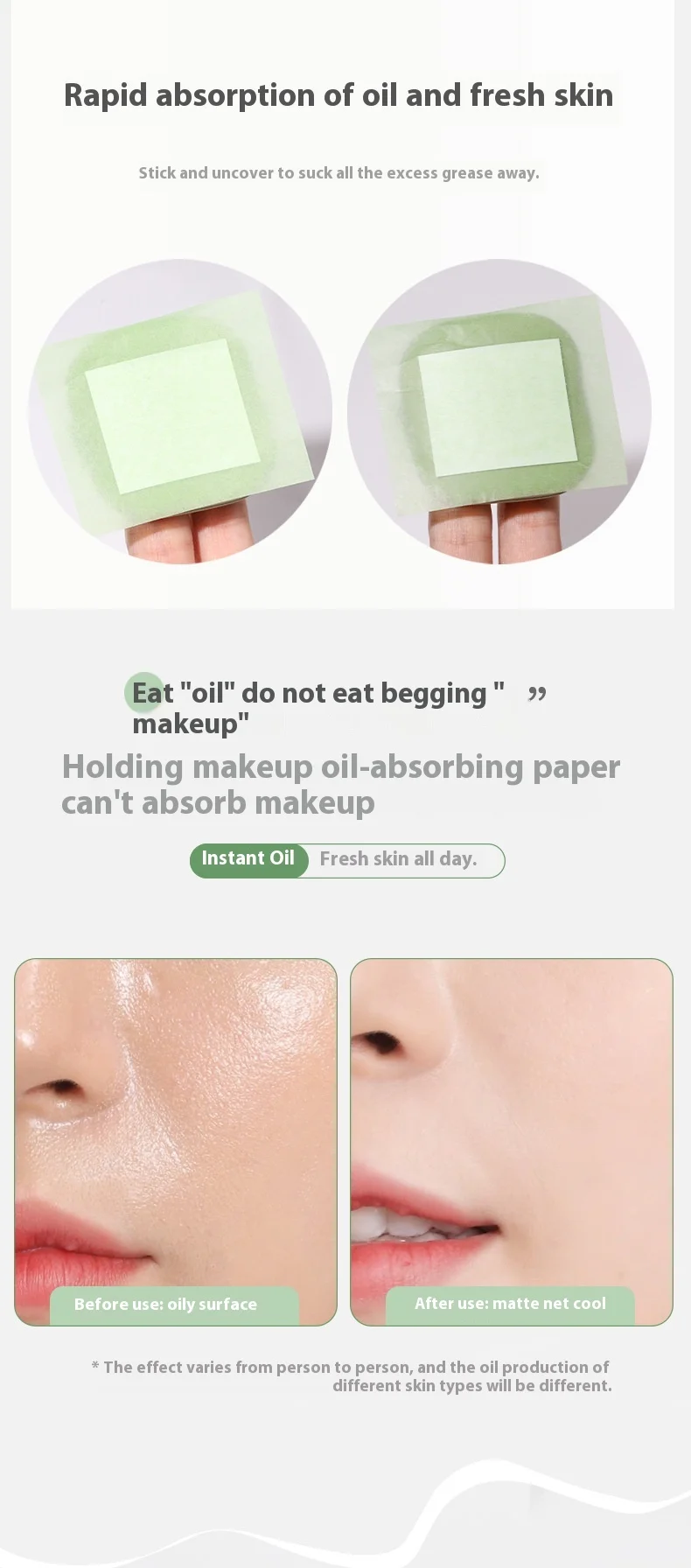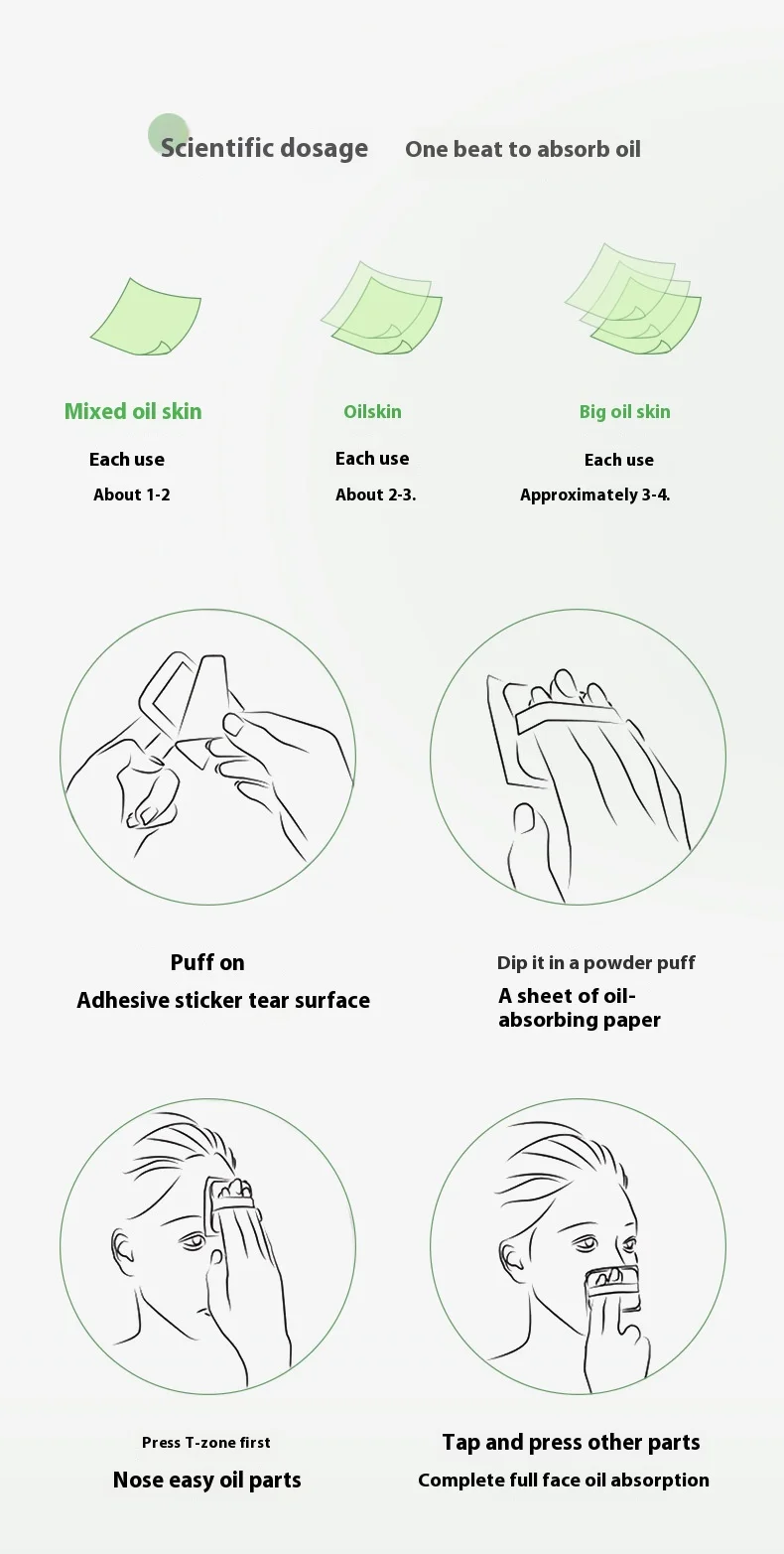 Lapok, amelyek felszívják a felesleges olajat az arcbőr felszínéről. Így elmúlik az arc csillogása, és matt lesz az arcbőr. A smink nem kenődik el a használatakor.