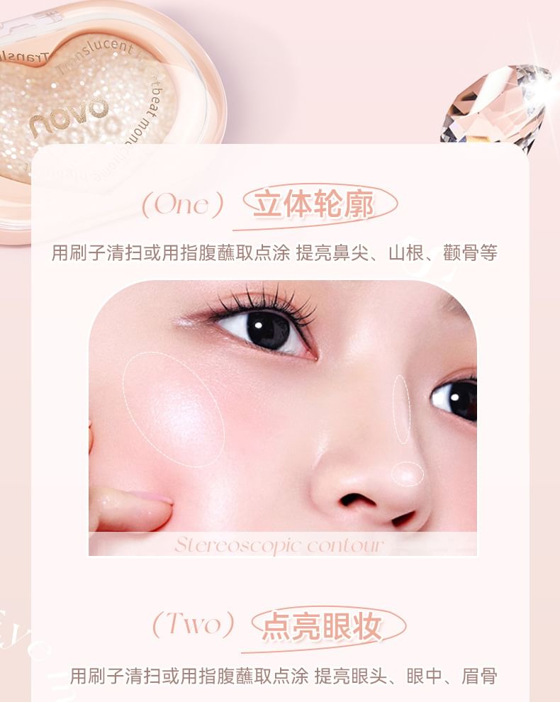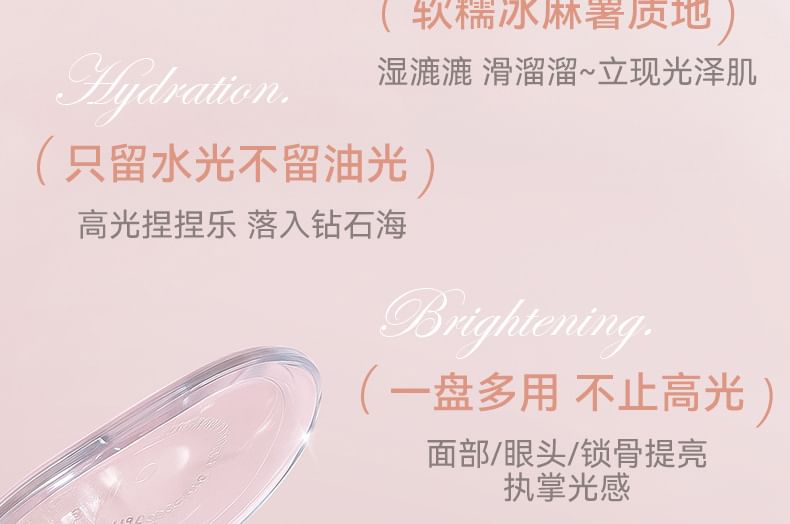 5 áttetsző árnyalatban elérhető, sokoldalú highlighter a koreai stílusú, harmatos fényű (dewy) smink elkészítéséhez.